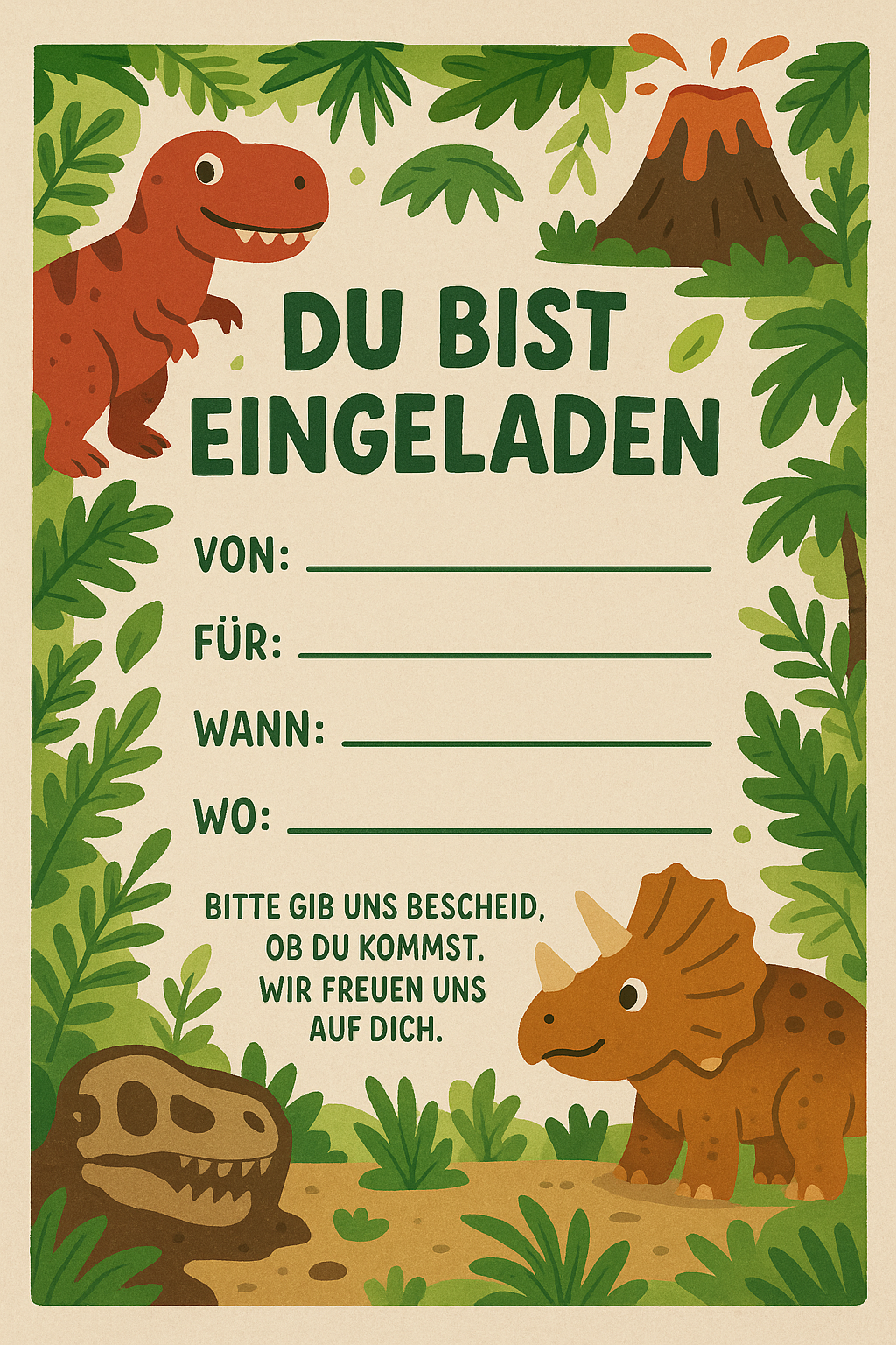 Verwandelt euer Zuhause in eine prähistorische Landschaft voller Dinosaurier. Die Kinder werden zu Dino-Forschern und erleben aufregende Ausgrabungen, Fossilien-Suchen und Urzeit-Spiele.